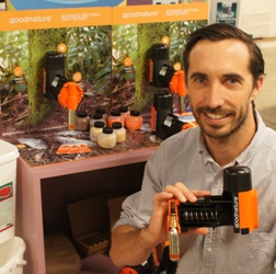 Humane rodent trap Rodents are lured to the trap with a non-toxic attractant, then once the detector is sprung a gas canister cartridge fires a bolt which instantly and humanely kills the rodent. A further novel tweak are goodnature detector kits (basically a small card containing a non-toxic lure) which can initially be placed to initially detect the potential pest and then identify it by the gnaw marks made – as these may be from a non-target rodent. For use with insect gel baits The dots incorporate a microscopic suction cap technology, meaning they do not feel sticky at all, yet still adhere to the treatment surface. When baiting is finished, they can be removed without leaving any mark. These are available from MakeSafe. Versatile protective net Unlike other dipped nets, this process creates a very strong, long-lasting, slow release mesh that will remain active for several years. UV stabilised, it presents both a physical and chemical barrier to insect pests. It can be produced with a range of different actives and has many possible uses. As well as mosquito nets, it is already being used in a variety of ways to protect stored produce, as well as other uses creative pest controllers will come up with. Chunky bars for rodents All aglow NARA modifications The first, in Daniel’s right hand, is NARA Liquid, as recently seen at PestTech in the UK. These gel balls contain 99% water with an aroma attractant and can be placed within a bait station, so making it more attractive to rodents. Seen in his left hand are refinements to two of the NARA products already on sale internationally. The larger of the two items is NARA Bloc. Responding to pest controllers’ requests, this is now to be made slightly smaller, meaning less is wasted after initial gnaw marks are detected and the smaller, flexible bloc means it fits easily into all bait stations. The popular NARA lure now comes in one size, interchangeable for both rats (larger end) and mice. |